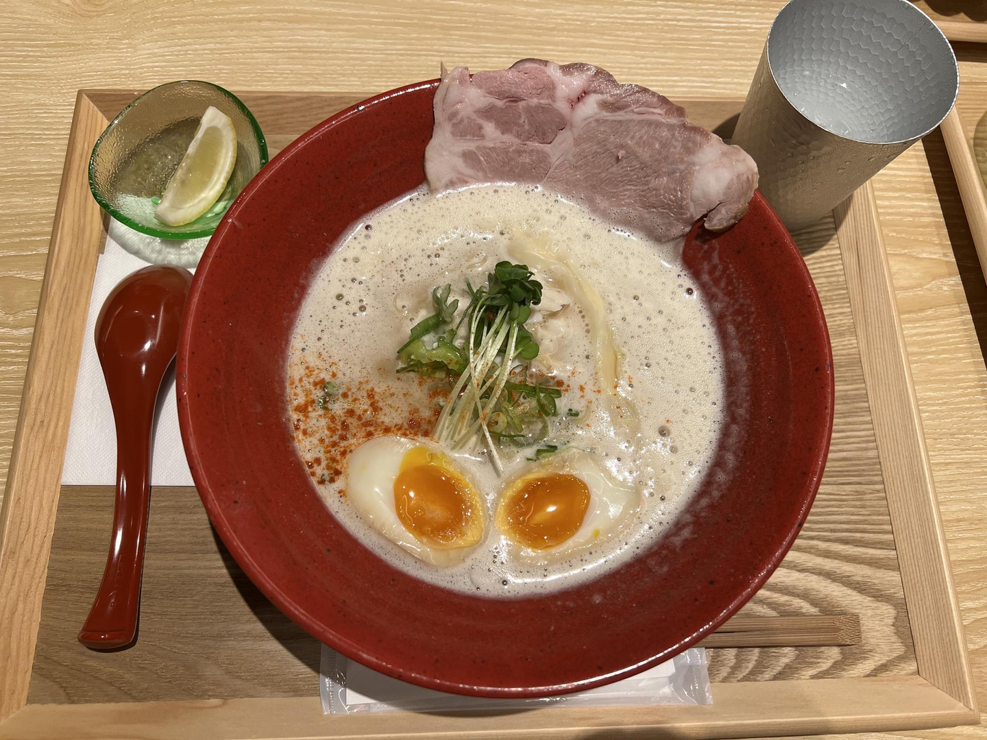 こちらの一押しが「鶏白湯らぁめん」!ということで私は「鶏白湯らぁめん」を注文しました。クリーミーなスープにトリュフのソース、低温調理した茶美豚のチャーシューがトッピングされていてラーメンなんだけど上品さが美味しかったです!!しかもレモン果汁で味変なんかもできちゃいました。他のラーメン屋さんとはまた違った美味しさがあったのでまた行きたいラーメン屋さんに仲間入りしました!