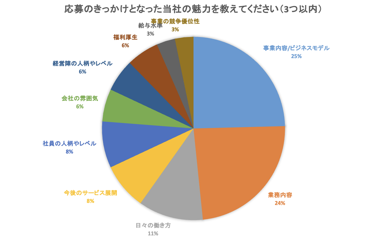 アンケートの結果、応募のきっかけとなった当社の魅力として最も多かったのは以下の2つです。