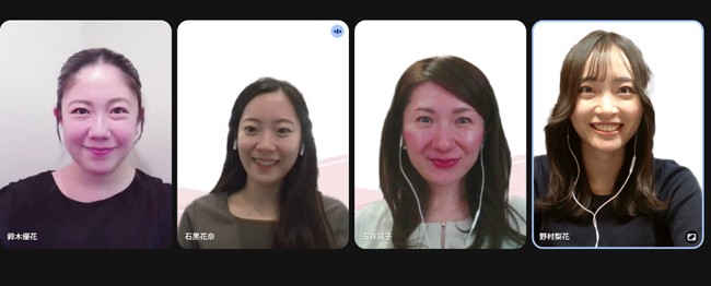 さまざまな取り組みが行われていますが、特にコミュニケーションで役立っていると感じるのは朝礼です。朝礼では、基本的にオンラインでお話ししながら、「ハッピー共有」で最近の嬉しかったことを共有しています。気づきを共有することで学びをお互いに得られますし、ハッピーな共有ができるように頑張ろうとも思えて、モチベーションアップにも繋がります。