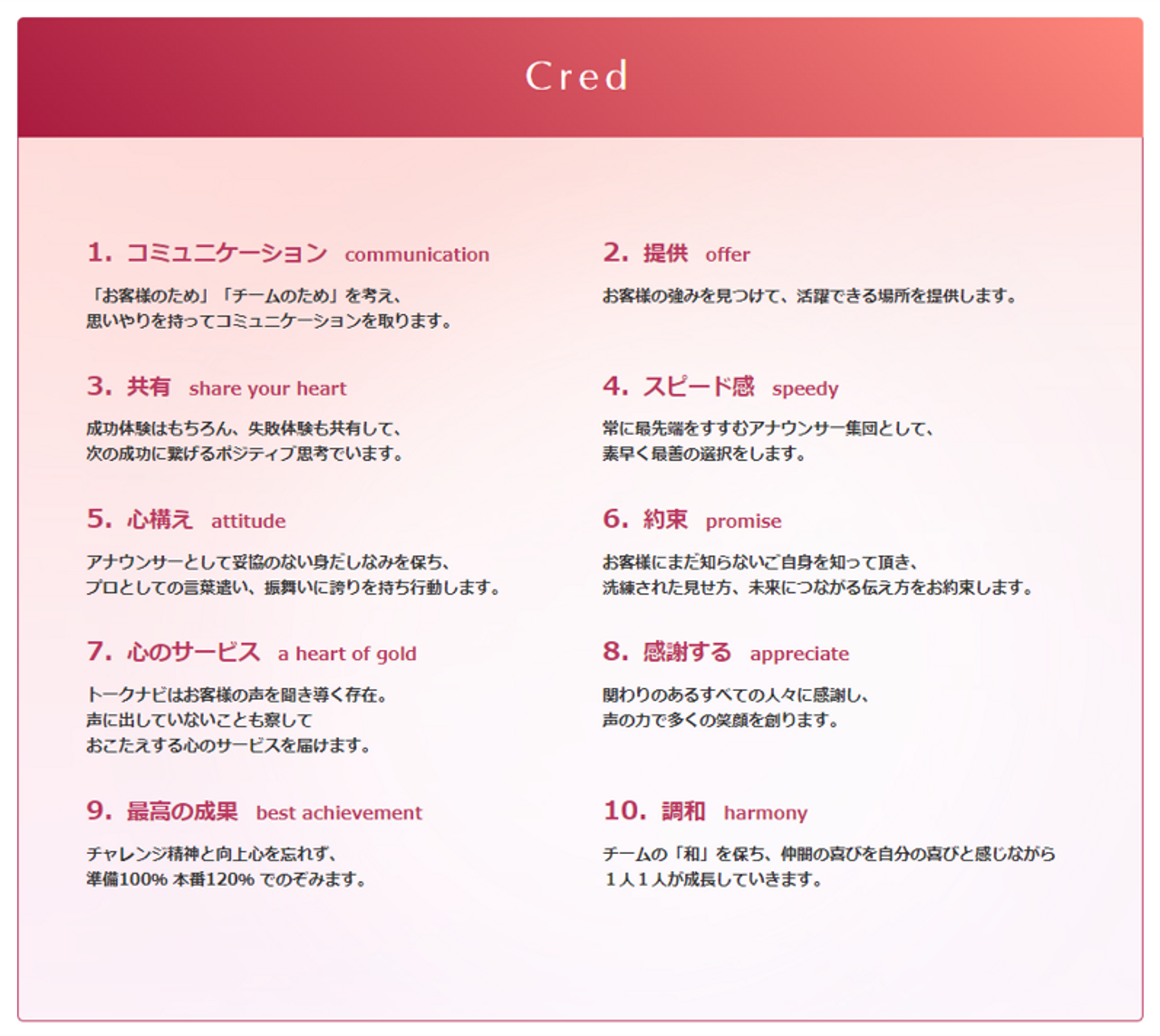 トークナビのクレドにもなっている「共有」マインドの表れです。