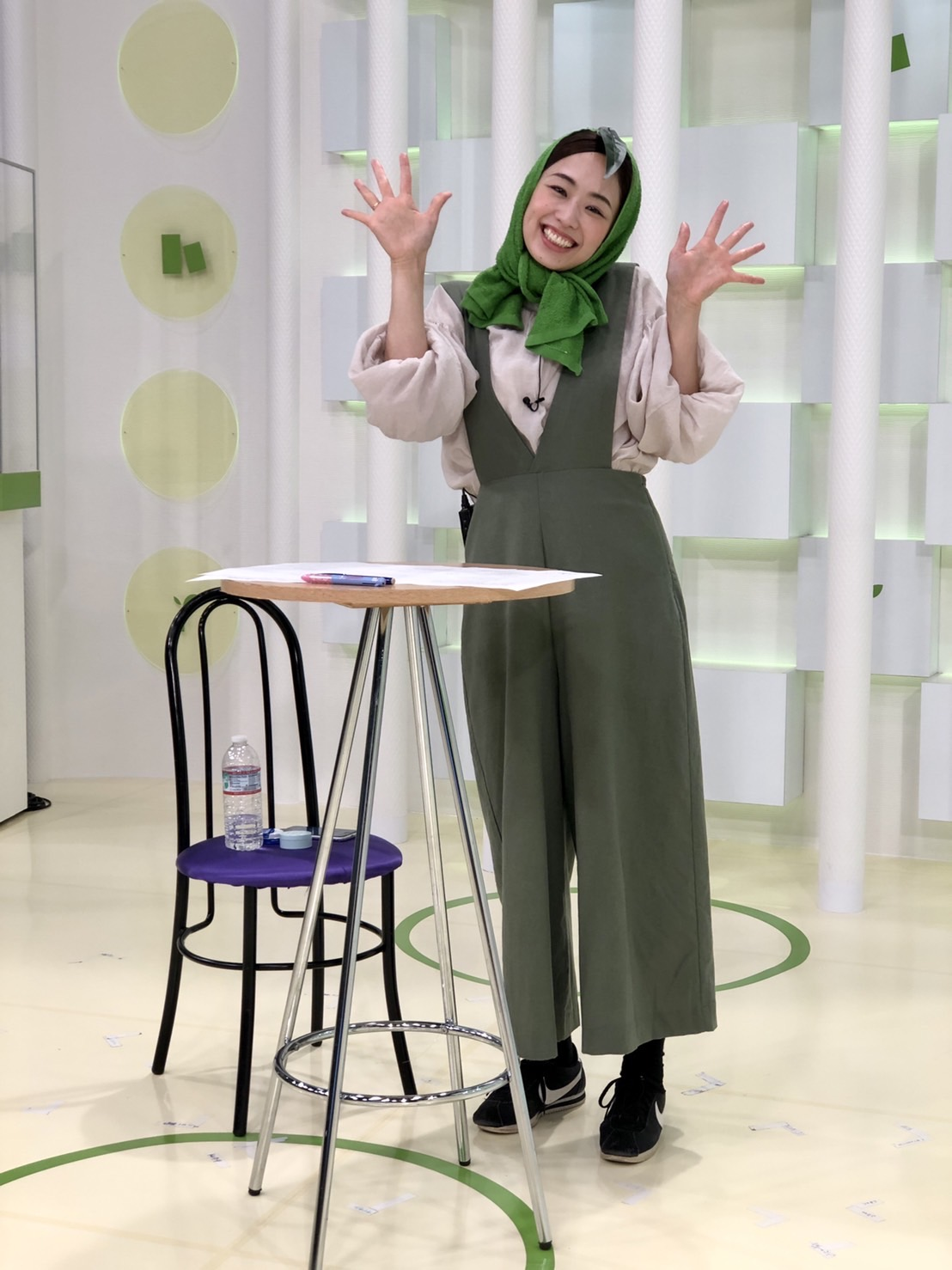 ↑日本テレビ「ZIP!」の中継で青森県の枝豆「毛まめ」を表現したスタイルに!