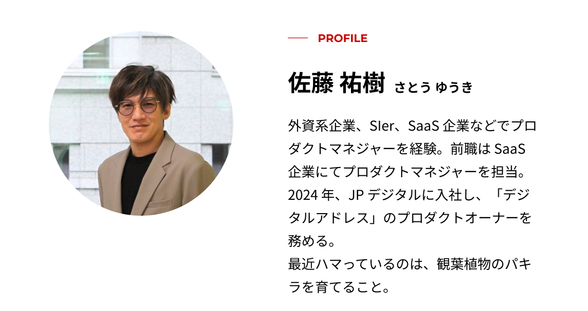 佐藤 PdMとして、住所に関する課題をどう解決できるかを考え、実現できるように企画を立て、形にしていく役割を担っています。日本郵政グループのアセットを活用して、開発・ビジネス双方と連携しながら、ゼロを1に、1を10にしていくような仕事ですね。