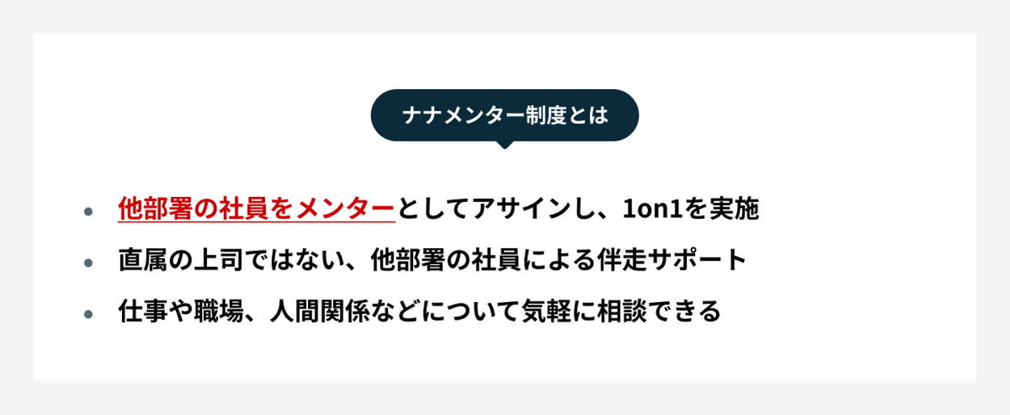 今回は、オンボーディングプログラム「ナナメンター制度」を紹介しました。