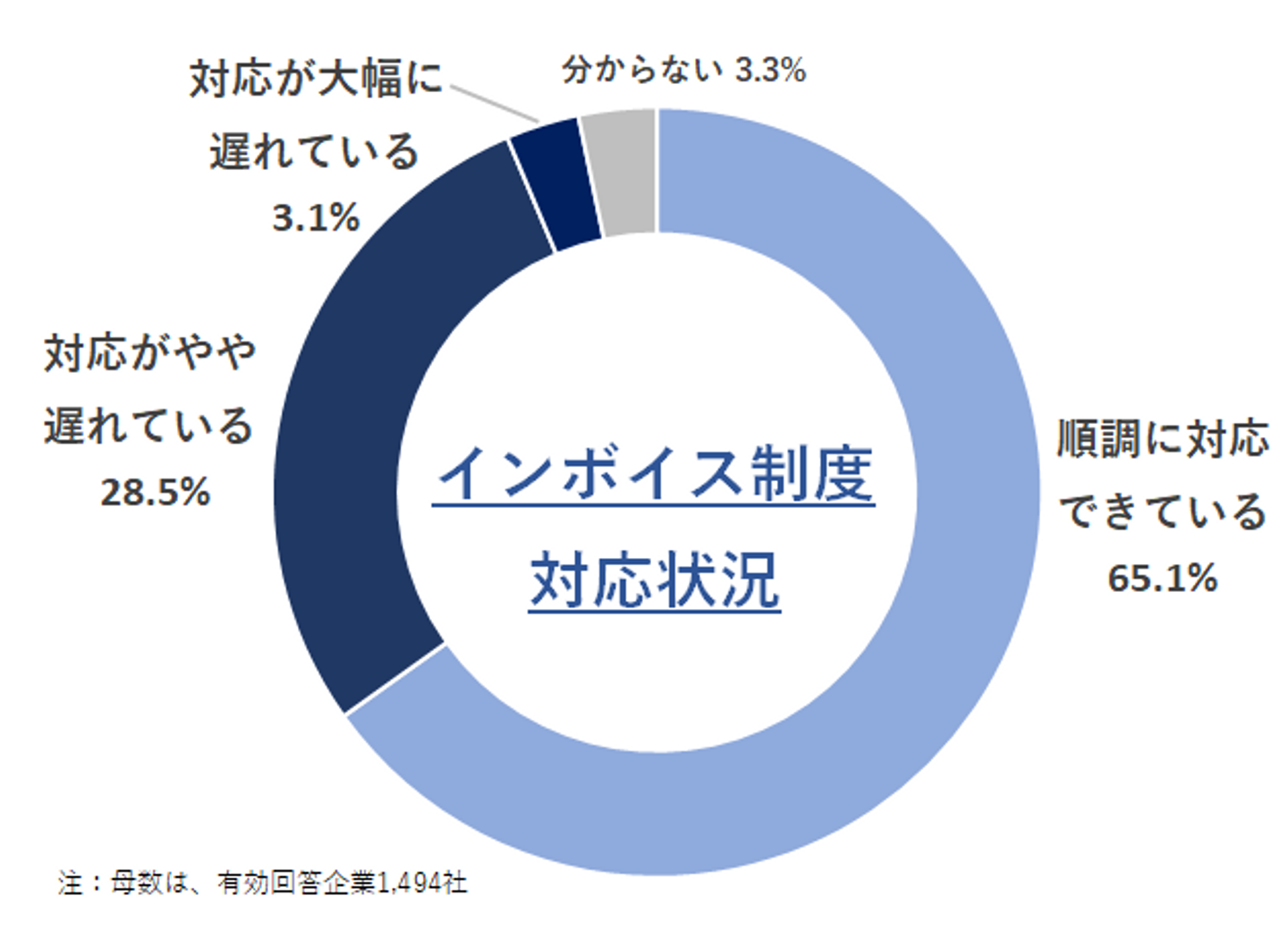 インボイス制度の対応状況「順調に対応できている」が65.1%に対して、「対応がやや遅れている」という回答が28.5%でした。