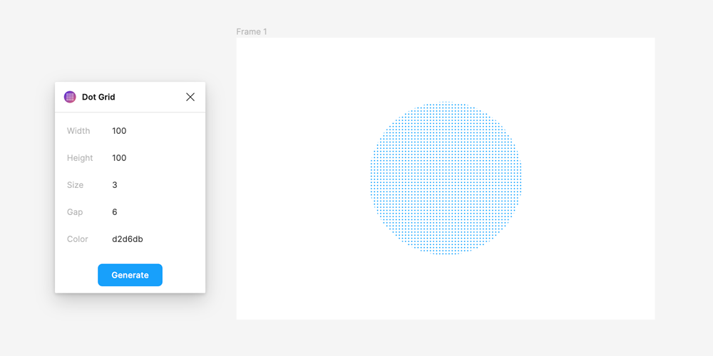 ドットの大きさ、全体の大きさ、ドットの間隔などを調整し、ボタンをクリックするとドットが簡単に生成できます。