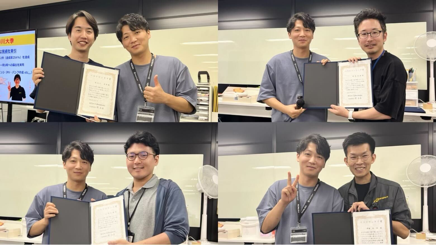 まずはじめに、下期の表彰を行いました。「ベストビジネス賞」「ベストエンジニア賞」「ベストスタッフ賞」そして全社員の投票で選出される「リベラウェアで賞」の4名が表彰されました!