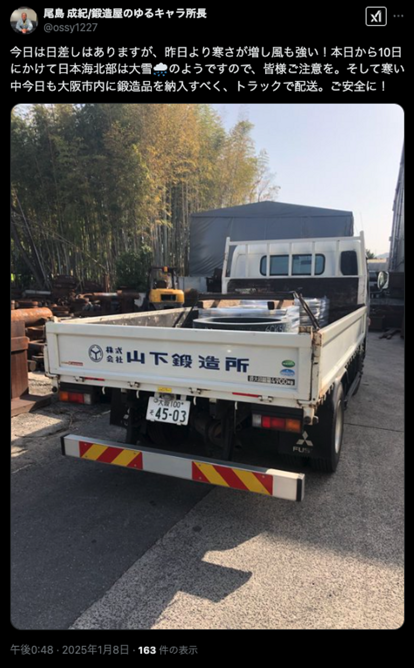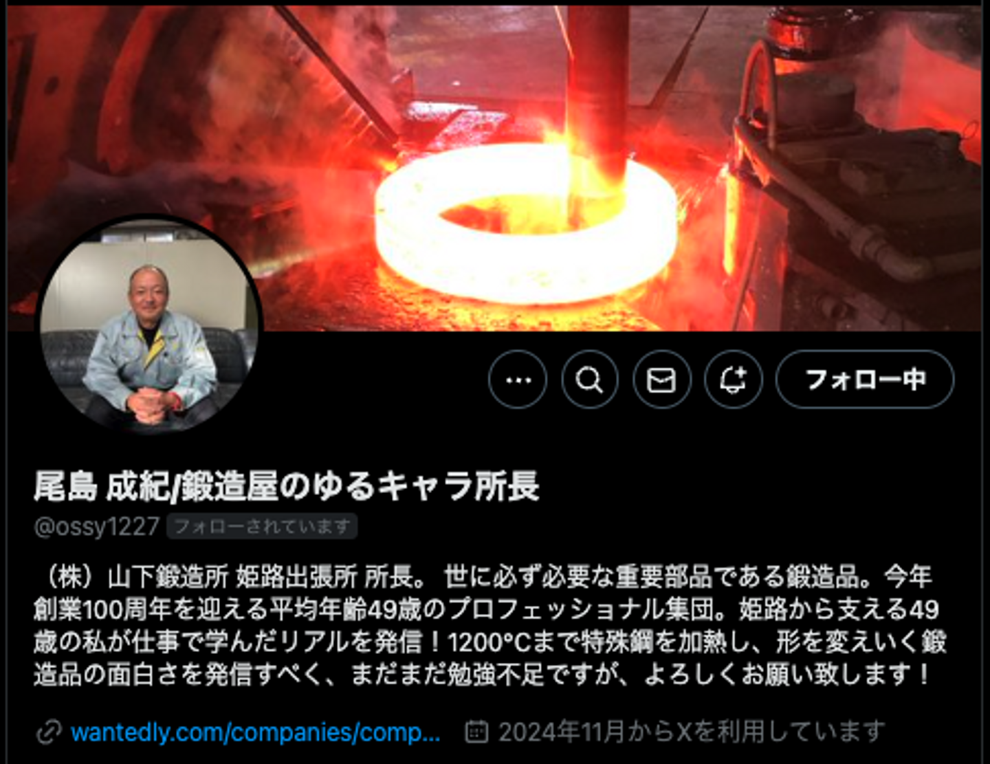 >>山下鍛造所 姫路出張所所長 尾島のXアカウントはこちら!