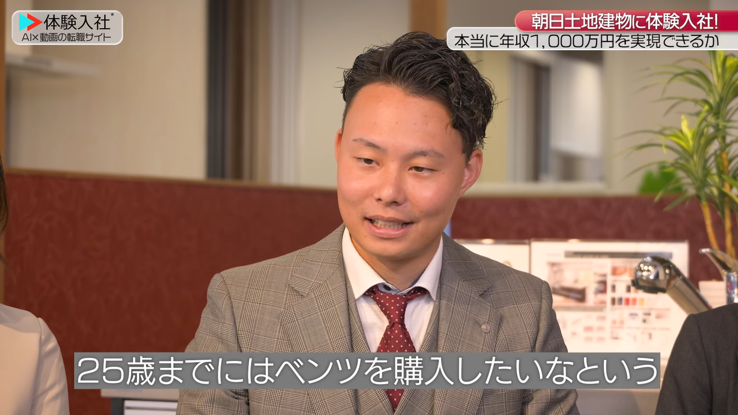 体験入社モデルの田中さんがまず目にしたのは、社員たちの驚くべきバックグラウンドと実績でした。座談会のシーンでは、4名の若手社員がそれぞれの本音を語ります。特に印象的だったのは、入社3年目の長田さんが「25歳までにベンツを買うという目標を、22歳でクリアした」と淡々と語る場面です。これは決して特別なことではなく、やる気次第で誰にでもチャンスがある環境であることが、仲間の頷きからも伝わってきました。