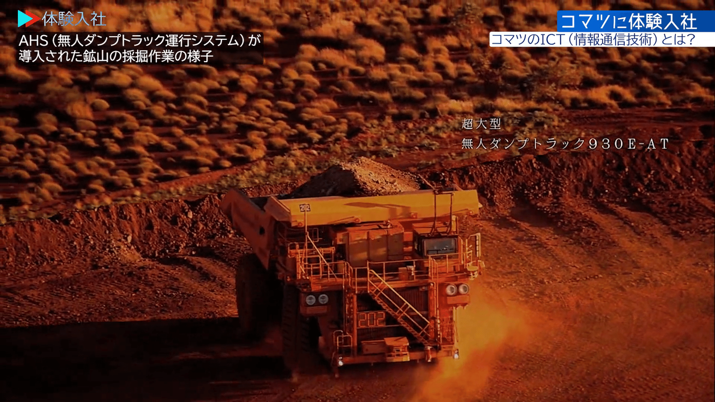 体験入社モデルの小野さんがまず驚いたのは、無人ダンプトラック運行システム(AHS)の圧倒的なスケール感でした。単に「無人で動く」という技術の紹介にとどまらず、それがなぜ必要なのか、過酷な現場でいかに安全性を守っているのかという背景までを、資料と実際の映像を交えて深く理解していくシーンでは、小野さんも「ICTでそこまで変わるんですね」と感嘆の声を漏らしていました。