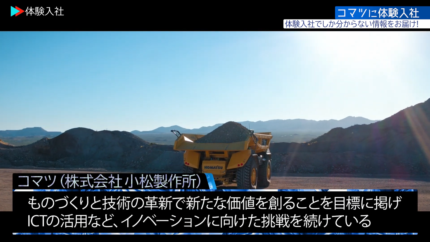 『体験入社動画』を、ぜひご覧ください コマツ株式会社の『体験入社動画』は、以下からご覧いただけます。