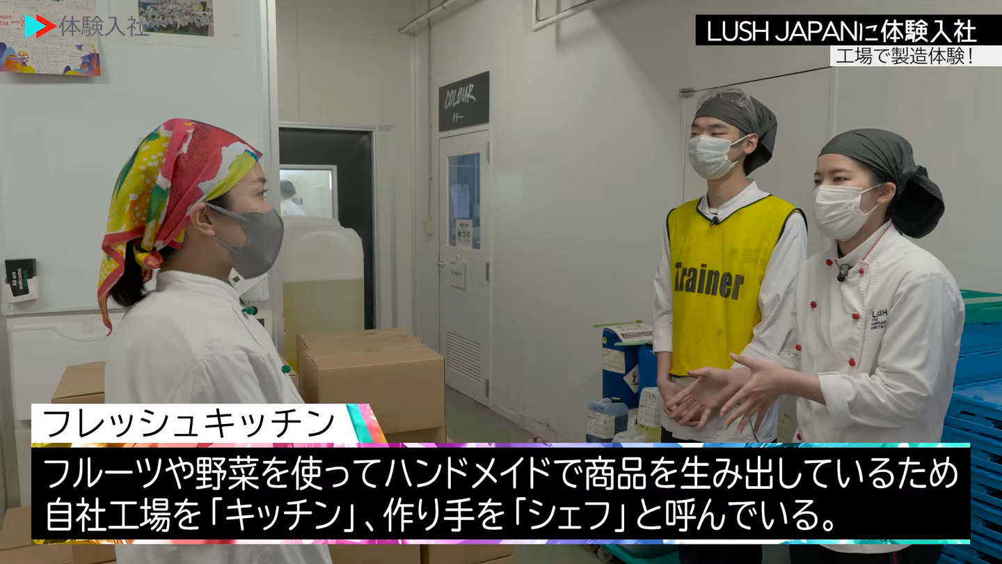 「伝わらない」という、採用の根本的な課題 化粧品製造という言葉を聞いて、みなさんはどのような風景を思い浮かべるでしょうか。多くの方は、無機質な機械が立ち並び、ベルトコンベアから次々と製品が流れてくる、いわゆる「ライン作業」を想像されるかもしれません。しかし、ラッシュの製造現場である「キッチン」は、そのイメージとは180度異なります。 実際には、本物の果実をカットし、手作業で練り上げ、一つひとつに作り手の想いを込める、非常にクリエイティブで活気あふれる場所なのです。これまでは求人票の文字情報だけで、この「ハンドメイド」のこだわりや、現場で飛び交う活発なコミュニケーションの温度感を伝えることに限界を感じていました。求職者の方は「自分にもできるだろうか」「どんな人たちが働いているのか」という不安を抱えたまま、応募のボタンを押せずにいたのです。