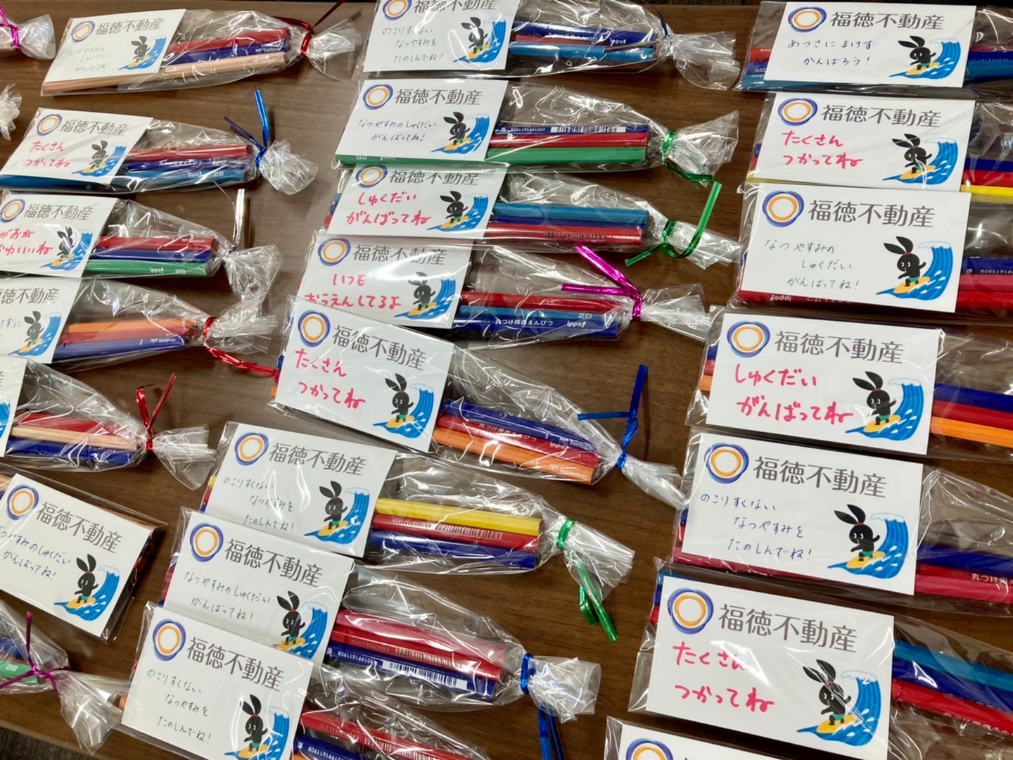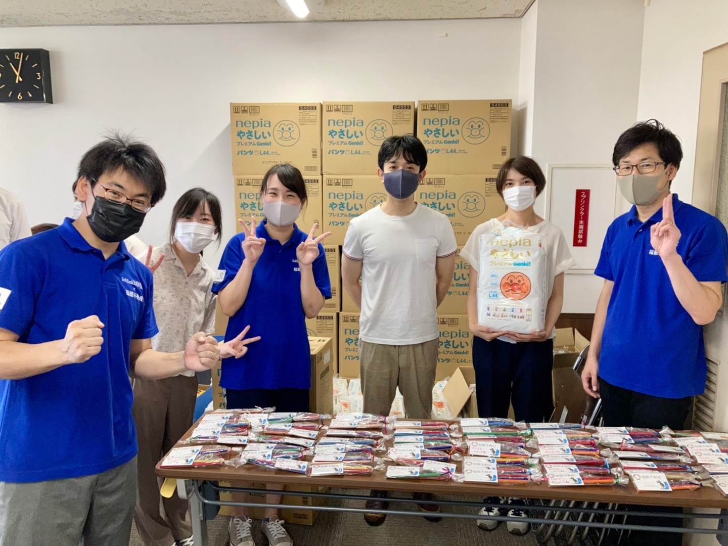 福徳不動産からは主にひとり親家庭の子供たちへの支援として、学習用品(えんぴつや消しゴムなど)、乳児向けの紙おむつの無償提供を行っています。
