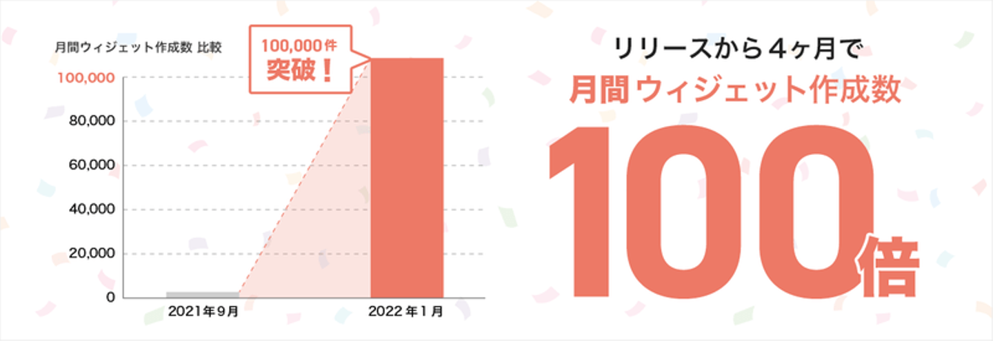 App Store公開から月間ウィジェット作成数が100倍に成長。2022年1月末時点の月間ウィジェット作成数は10万件に到達しました🎉🎉🎉