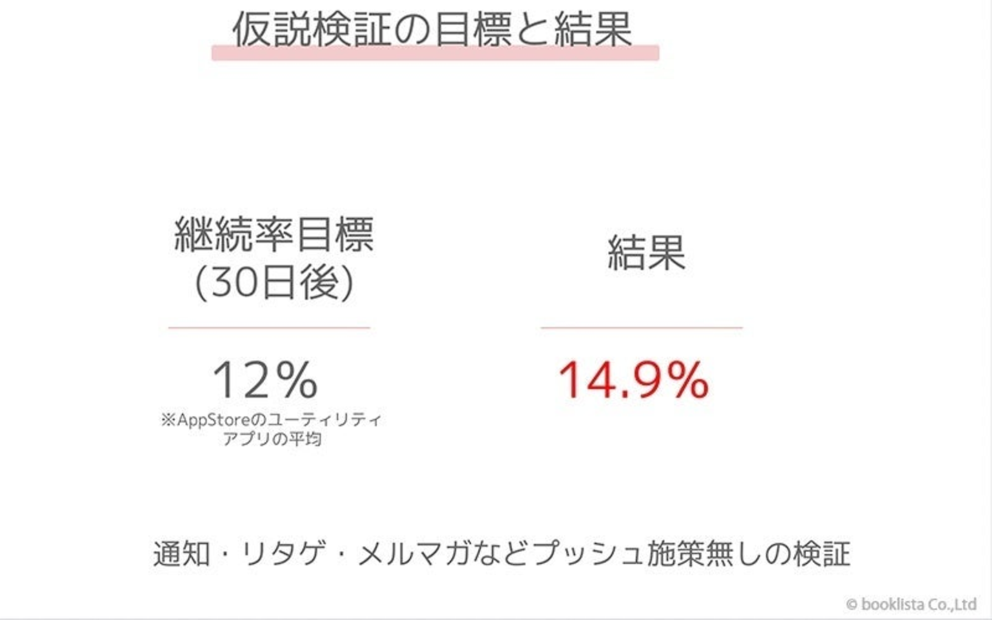 リリース後に計測した継続率がこちらです。ユーティリティ系の他社アプリよりも継続率が高い結果になりました。しかもプッシュ通知などをなにもせずに。