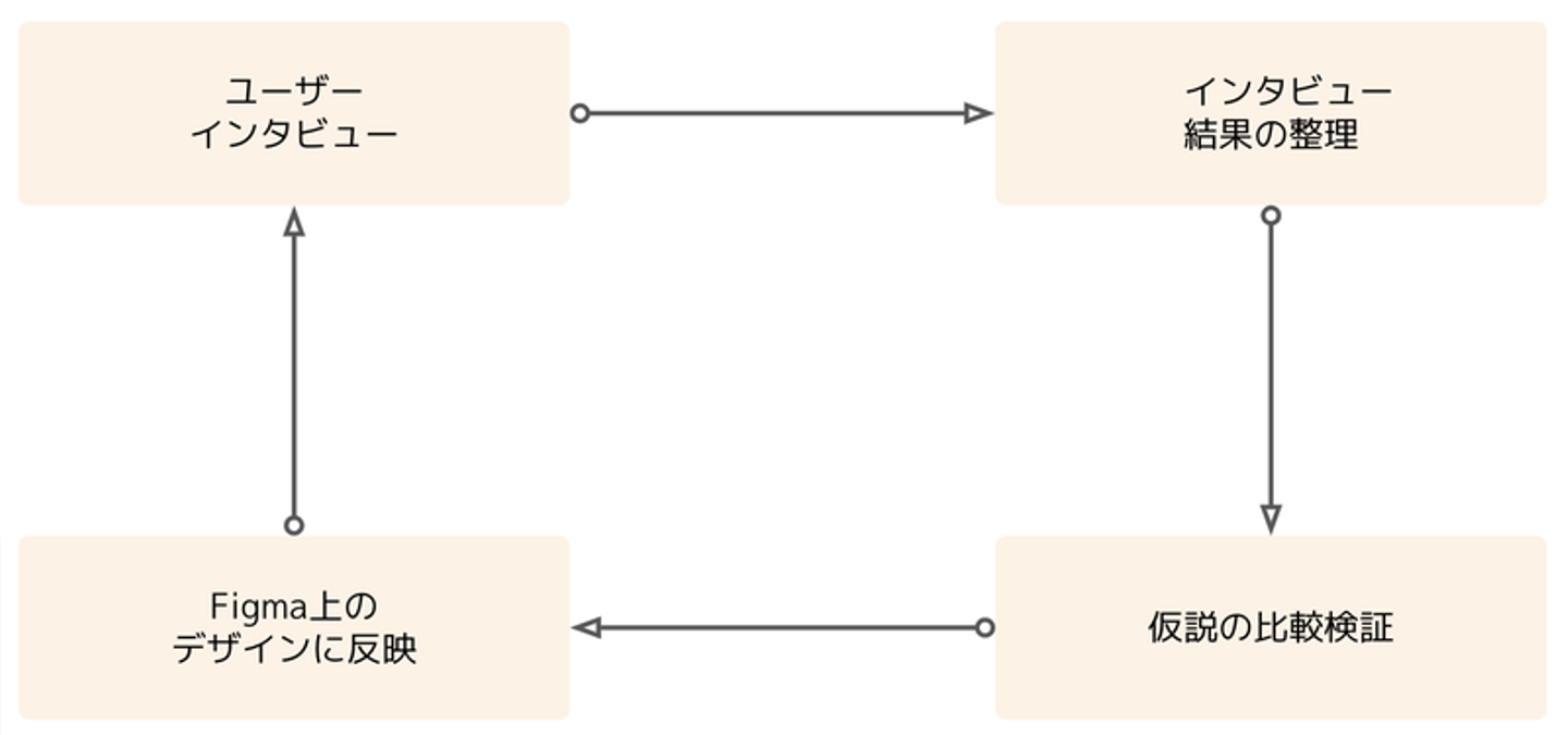 「仮説だけをまずつくってそれありきで進める」ということはせず、仮説とサービス案(解決策)をユーザーインタビューを通して同時につくっていくサイクルを回していきました。