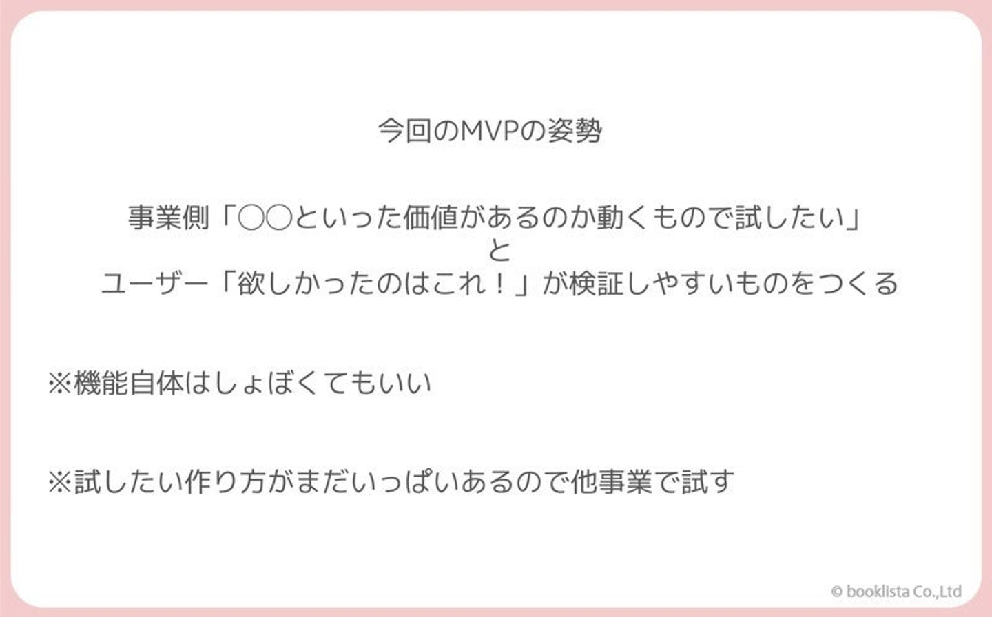 ちなみに、「MVP」の考え方については、下記をベースにしています。