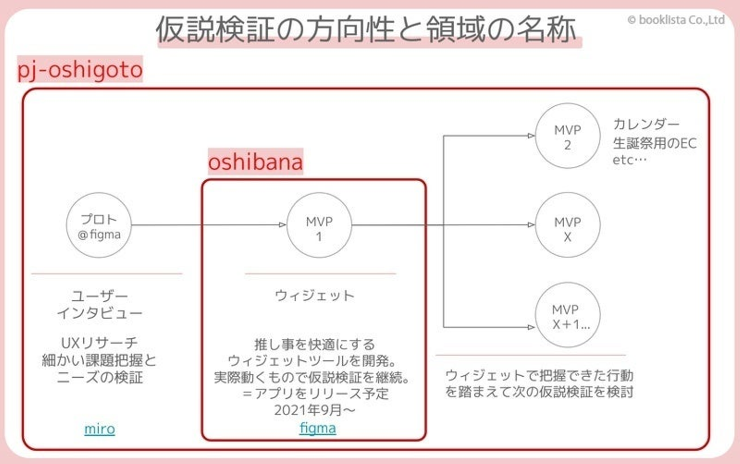 2021年の年明けには価値の仮説や事業の仮説を起こして、具体的にどういった検証を行うのかをまとめ、社内外にプレゼンをはじめました。