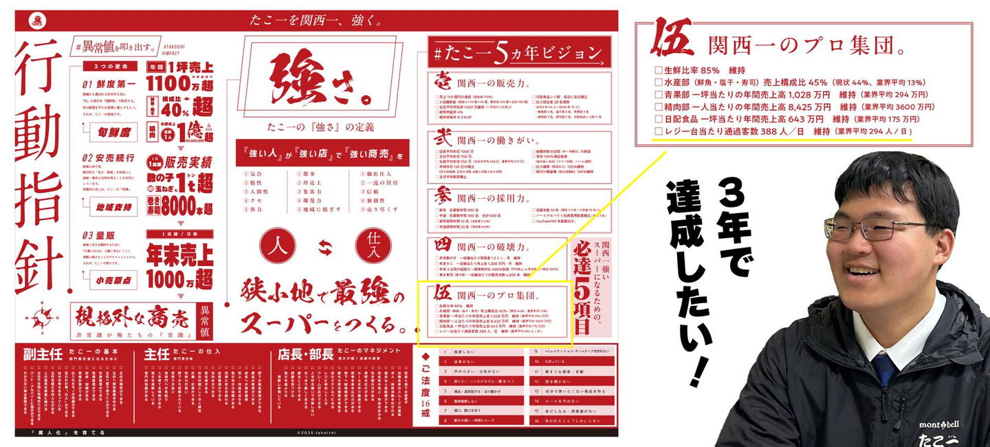 僕、たこ一の5年ビジョンである「レジ1台あたり1日388人集客」っていうのを、3年で達成したいと思ってるんです。