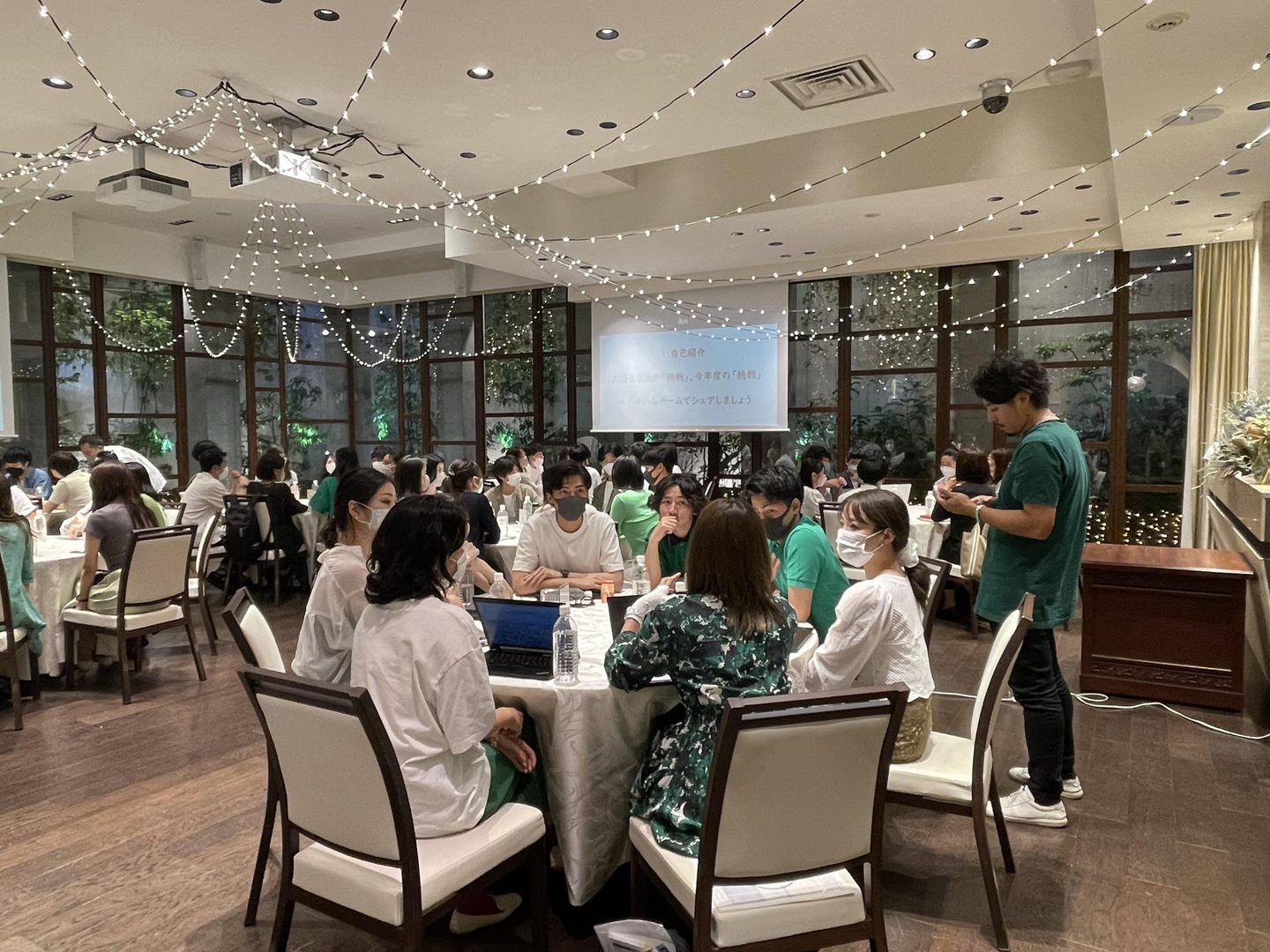 コロナウイルスの影響により、久しぶりの開催となった今回のオフサイトMTG!ドレスコードのホワイト・グリーンに身を包み、爽やか&おしゃれにきめた社員が集いました。