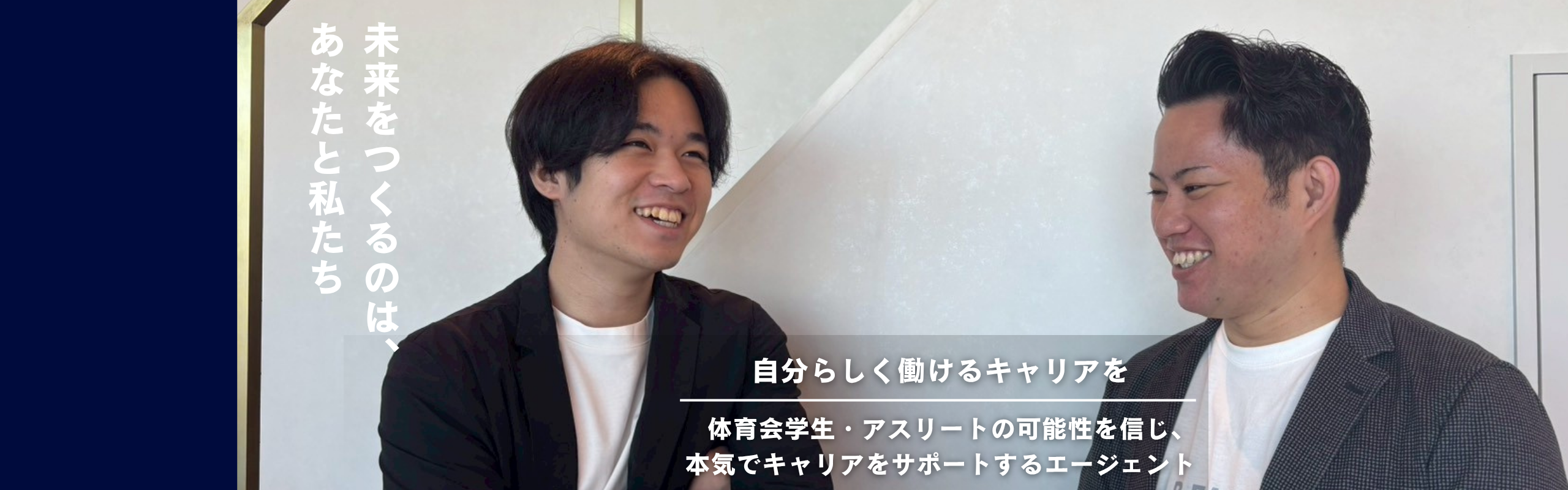 私たちは、内定を獲得することだけをゴールだとは思っていません。 皆様がより幸せに、長く頑張り続けられる環境を提供いたします。 競技で磨いてきた経験と情熱を、ビジネスの世界で思いっきり発揮してほしい。 そして、情熱に満ちた社会をつくる一員になってほしい――それが私たちの願いです。 私たちは、体育会学生・アスリートの可能性を信じ、本気でキャリアをサポートするエージェントです。 求人サイトには載っていない、企業のリアルな情報をお届けします。