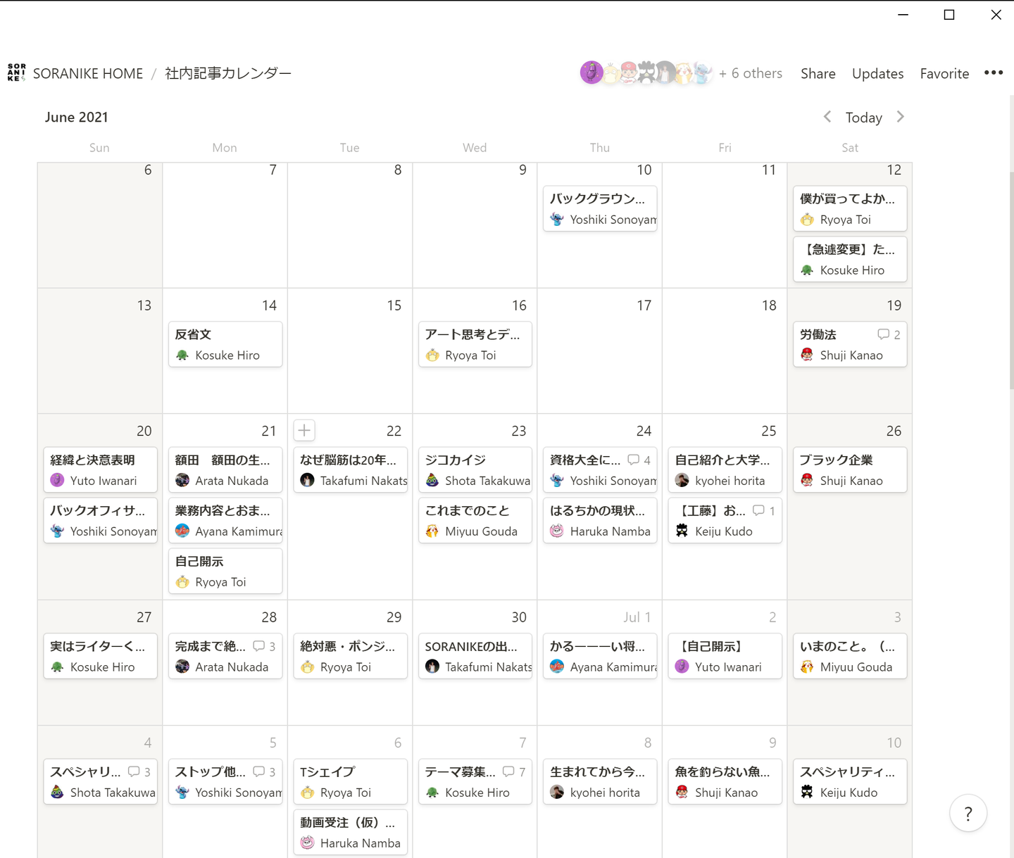 弊社ではカレンダーを使ってその日の担当者を割り振ることで、社内全員が社内記事を書くように管理しています。