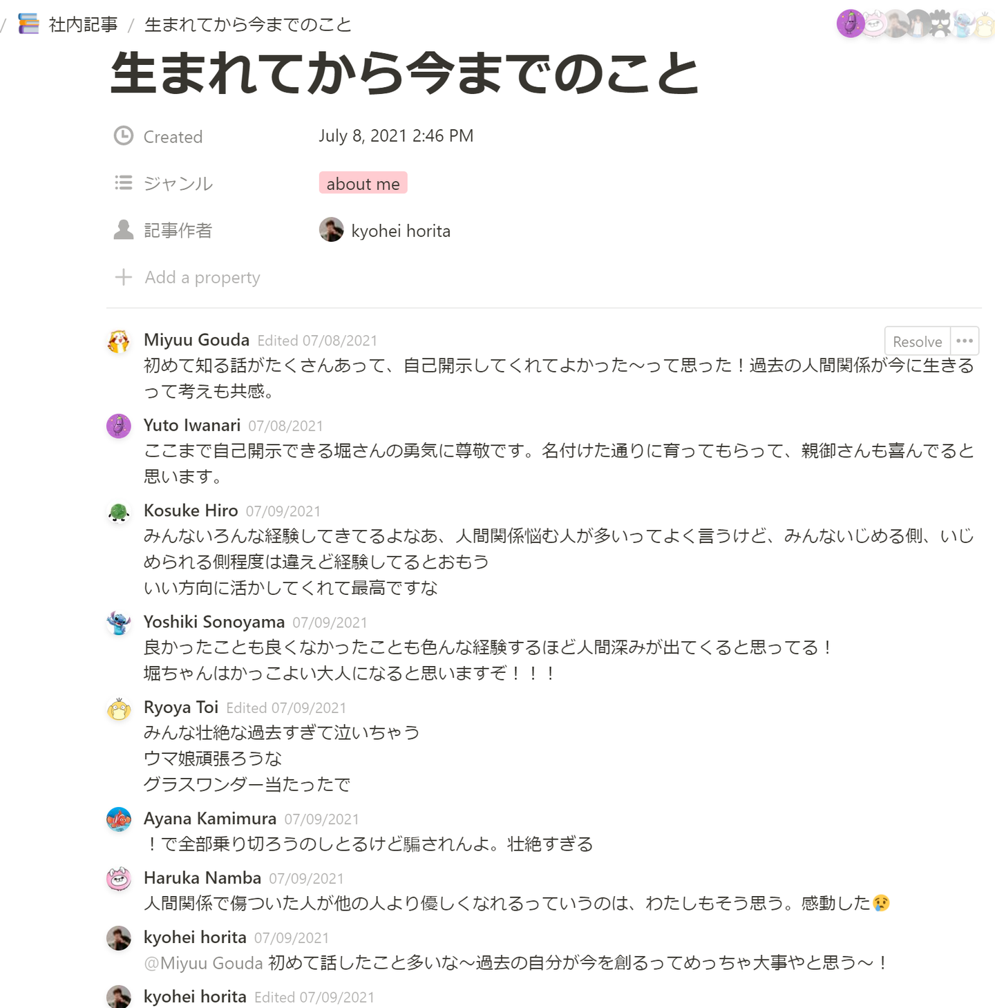 書いた社内記事に対して、他のメンバーがコメントできるのも、notionを媒体にしているメリットだと考えています。
