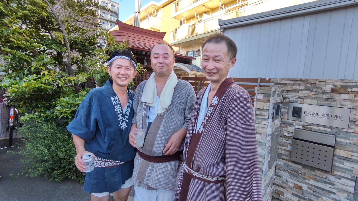 栄工舎では、神輿を担ぎたいという社員に半纏を貸し出し、一緒に祭りを盛り上げています。