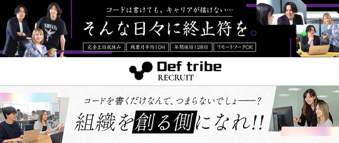 Def tribeという社名の由来は、Defは『イカした、カッコイイ、素晴らしい』という意味のアメリカの俗語、tribeは、『部族や集団』という意味です。 この社名こそ、私たちが目指す組織であり、常に関わった方々に対し最高を届ける為、あらゆる面で全力のパフォーマンスを発揮し続けられる強い集団を目指します。
