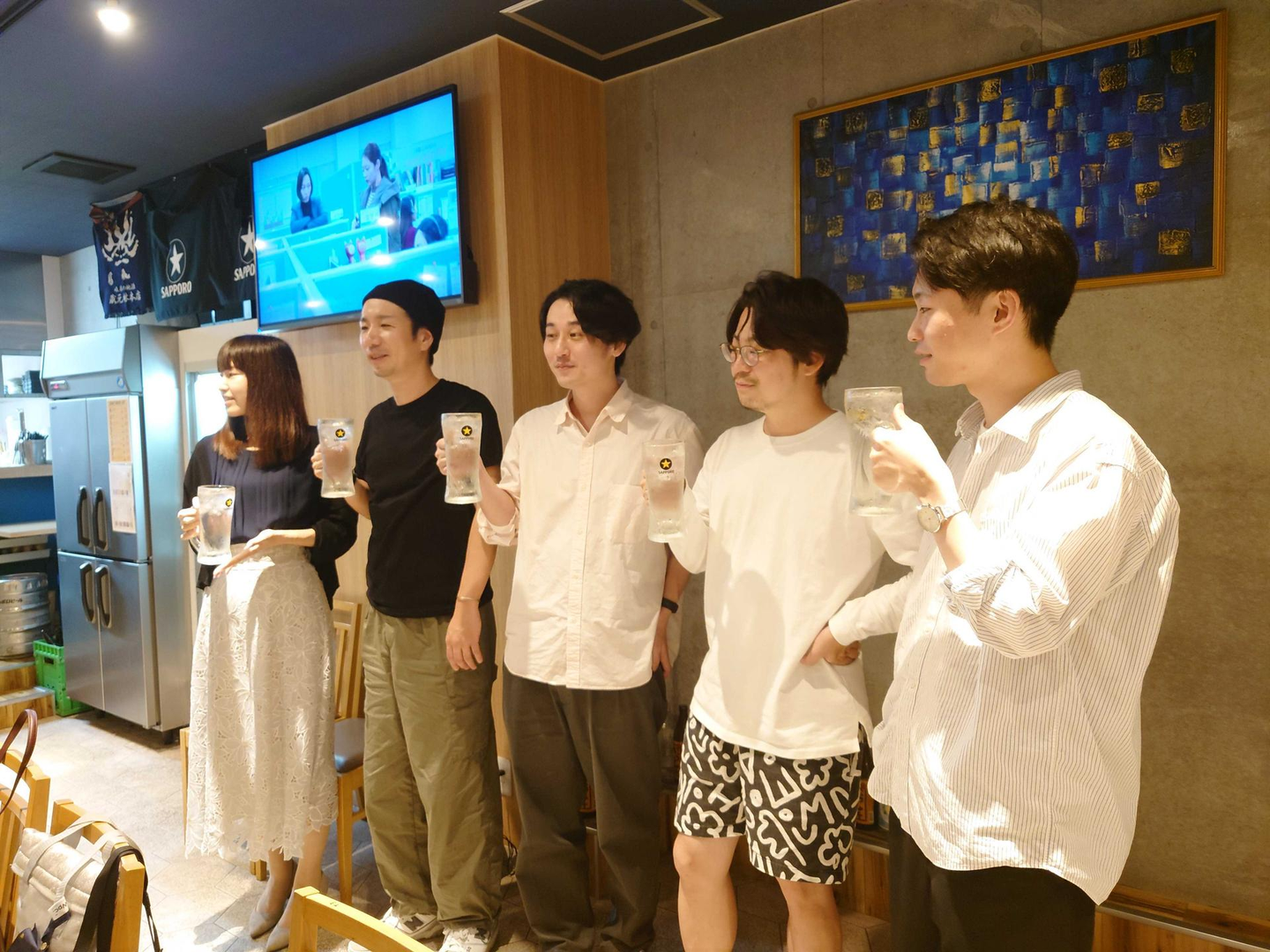 二次会では、誕生日月の社員のお祝いもサプライズで行い、ケーキを用意してみんなで温かくお祝いしました。自然と笑顔があふれ、和やかな雰囲気の中でお酒や食事を楽しむことができました!参加率も非常に高く、ほぼ全員がAll Handsから引き続き参加してくれたことも、社員同士の結束力の強さを感じました!