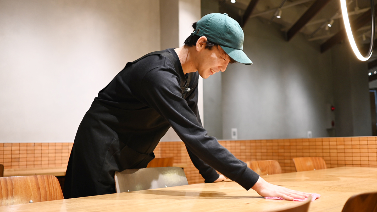 スタッフの働き方の面では、閉店作業自体が21時と深夜ではないこと、他店舗の余剰スタッフがヘルプにきてくれることなどがあり、無理のない働き方ができていると考えています。飲食業界は何かとブラックな印象を持たれがちですが、全社で休日が月に8回から9回へ増えたことや、有給をいつでも取れる環境など整備されています。僕自身、入社後1年経ちますが、休みや働き方で疑問や不満が生じていないのが嬉しいです。仕事が楽しくて、気づいたら「あ、休まなきゃ」という感覚ですね。