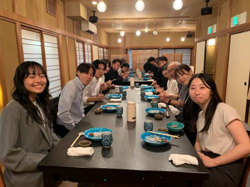 内定式とは打って変わり、和気あいあいとした雰囲気で様々な話題が飛び交いました。