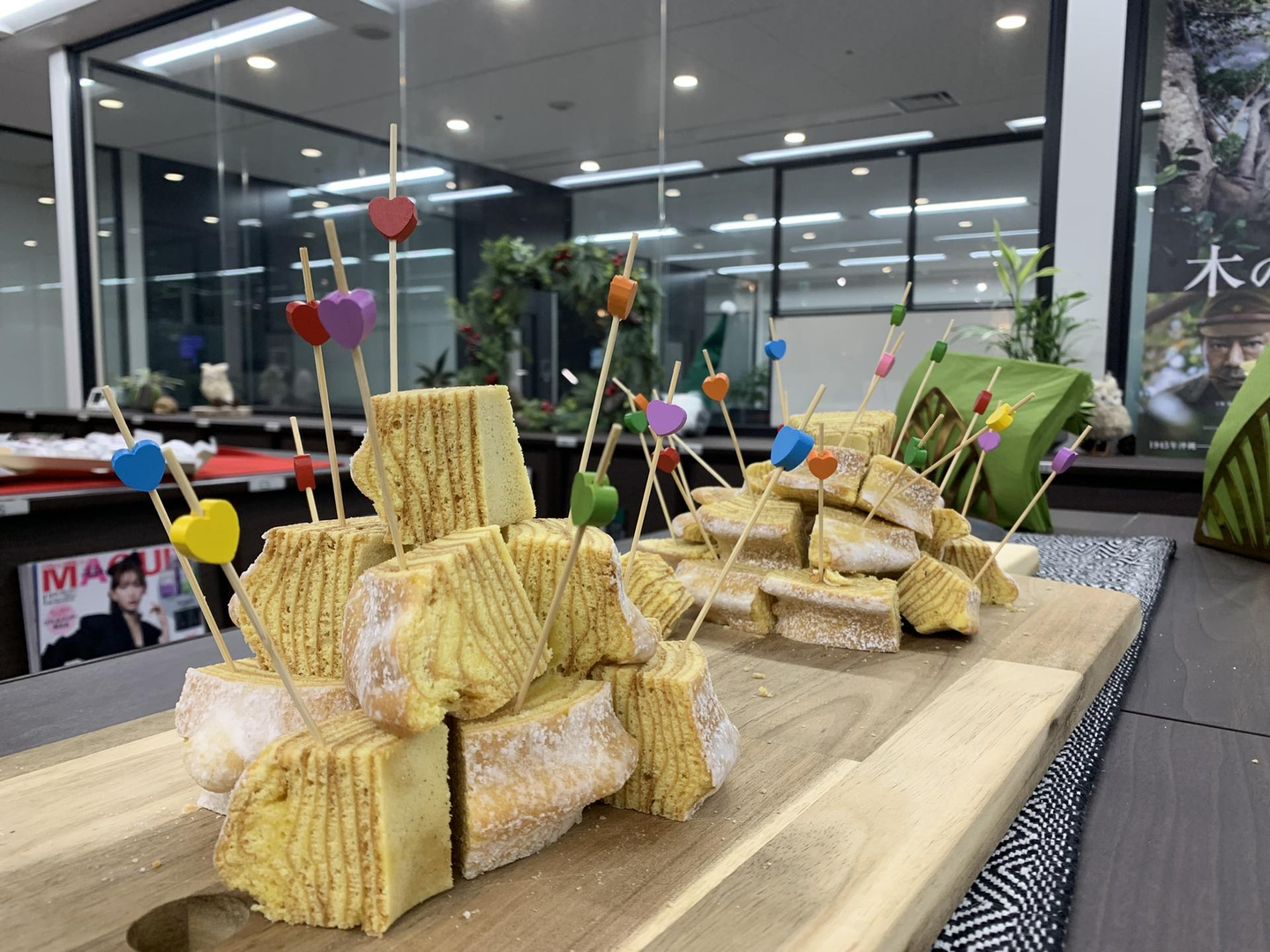 ↑ 関連会社の新東通信様からはバームクーヘンの差し入れがありました
