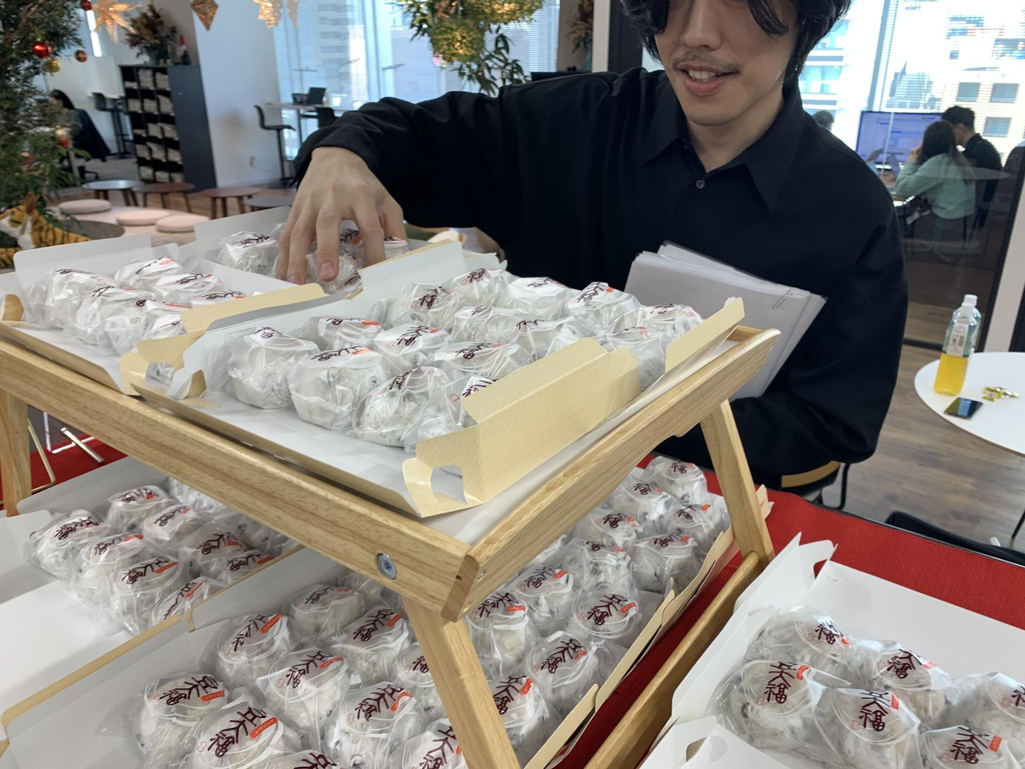オフィスでは、社長から“大福”の差し入れが届き、