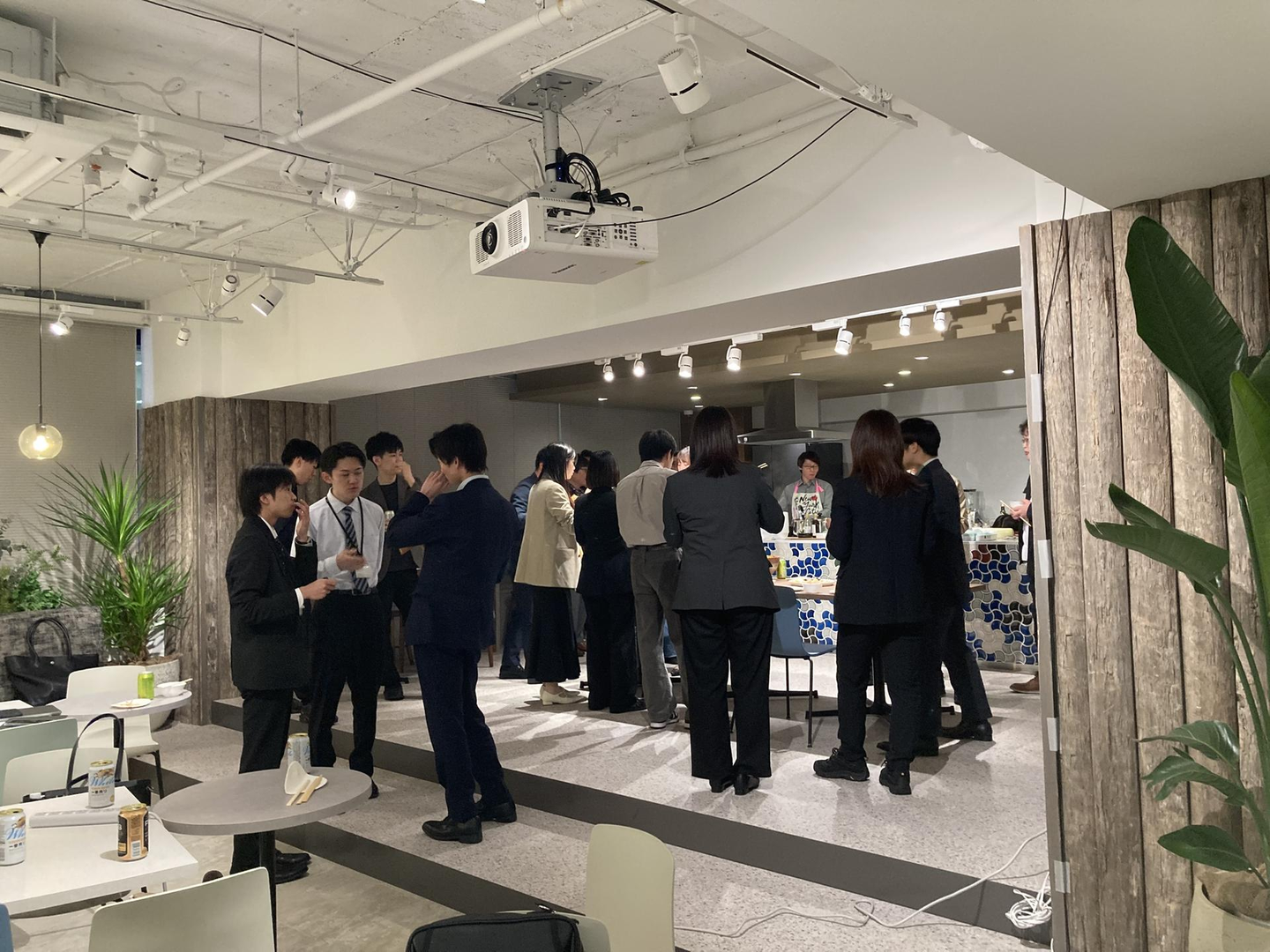 ドリンクを片手に、新入社員のみなさんは会社間の垣根を越えて楽しく談笑していました。