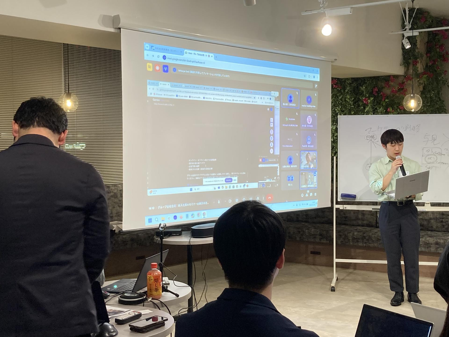 限られた時間の中、街バルの概要をAIツールに取り込み、事前に学習したフレームワークなどをプロンプトで指定して、いくつかの集客プランを提案してもらい、各社代表者数名が発表しました!