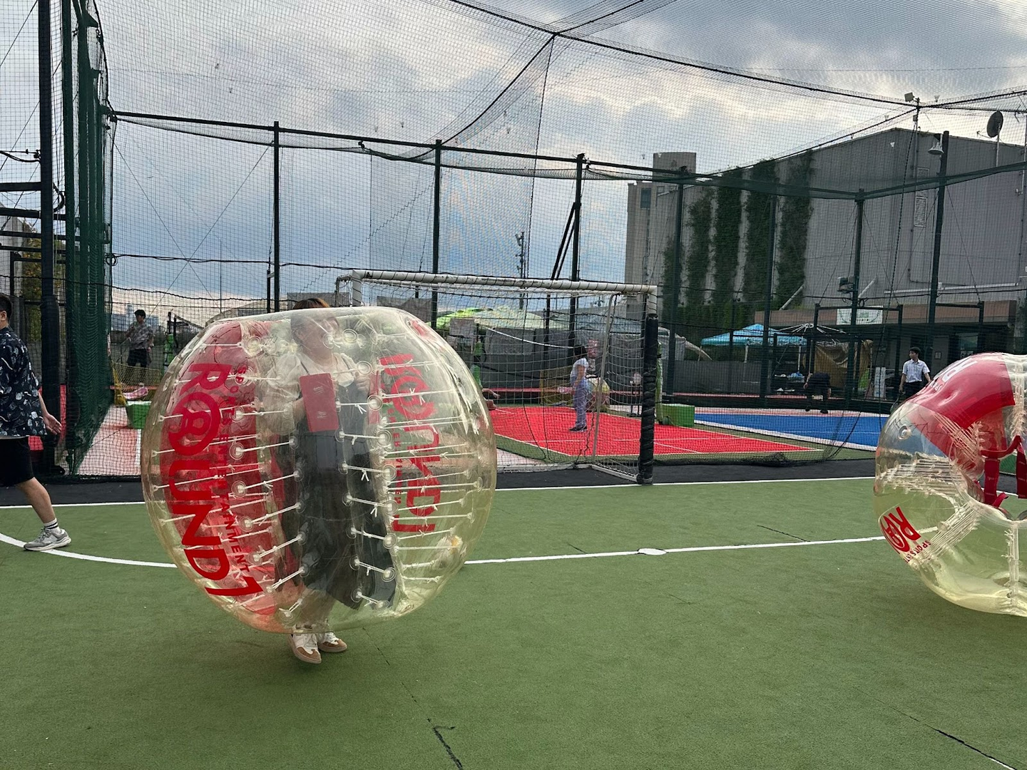 大きなボールの中に入って、ぶつかって、跳ねて、転がって…サッカーに限らず、いろんな楽しみ方ができるそうです!