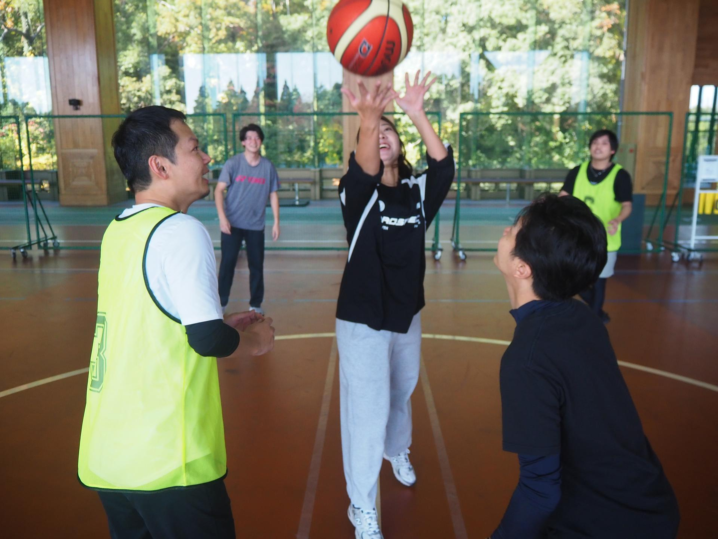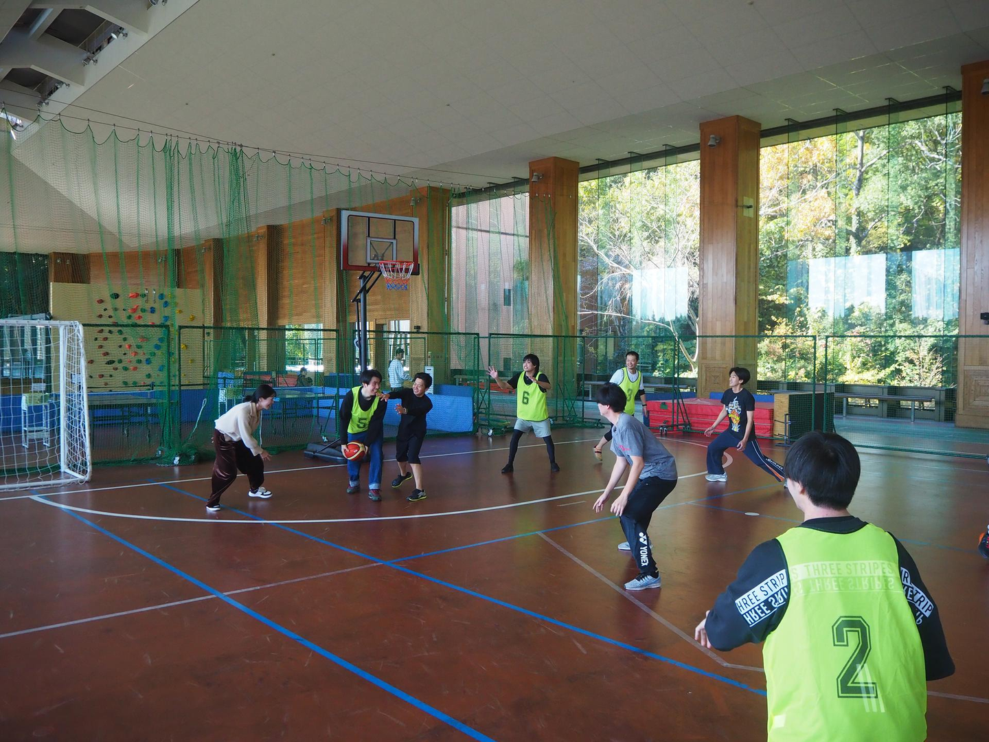 リソルの森ではバスケができるコートもあるので、2チームに分かれて試合を実施!
