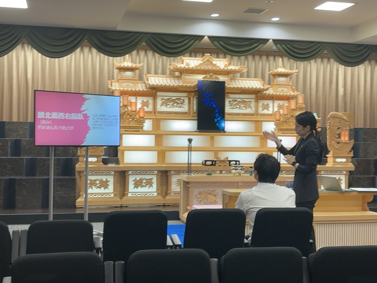 実際の納棺式に立ち会う訳ではなく、職員が説明しながら学生さんに体験していただくのですが、葬祭場や祭壇、実際の棺を前にして行うのはなかなかの緊張感があります。