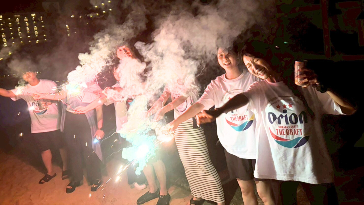 沖縄の海、サンセットBBQ、部屋での語り合い。どれもシンプルですが、チームの結束強化は間違いなし!