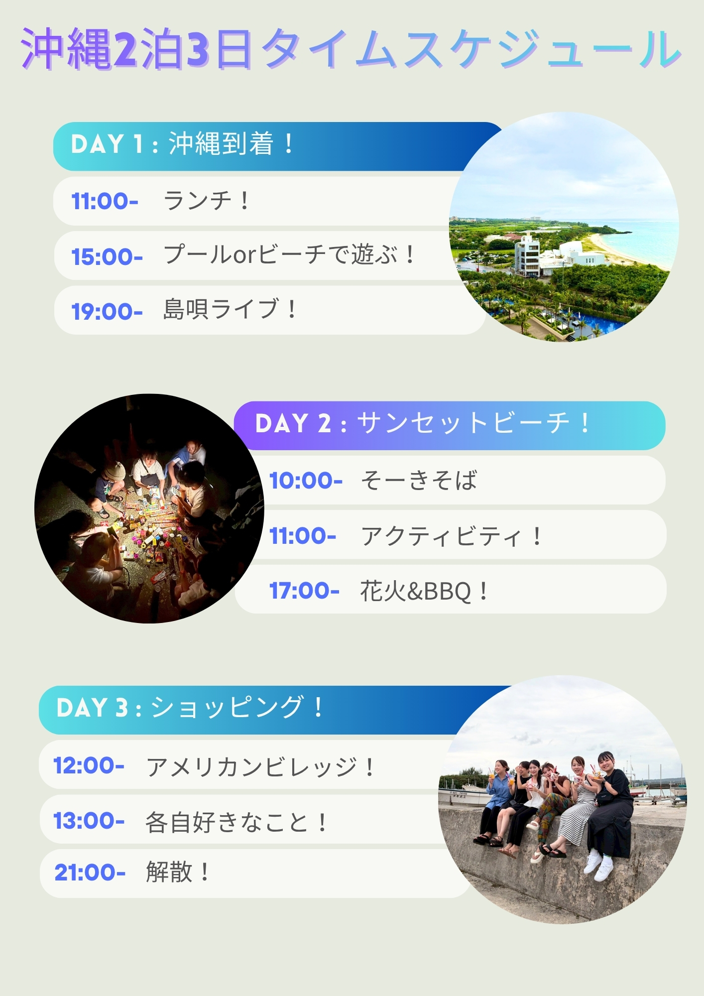 2泊3日のタイムスケジュールはこんな感じ👇