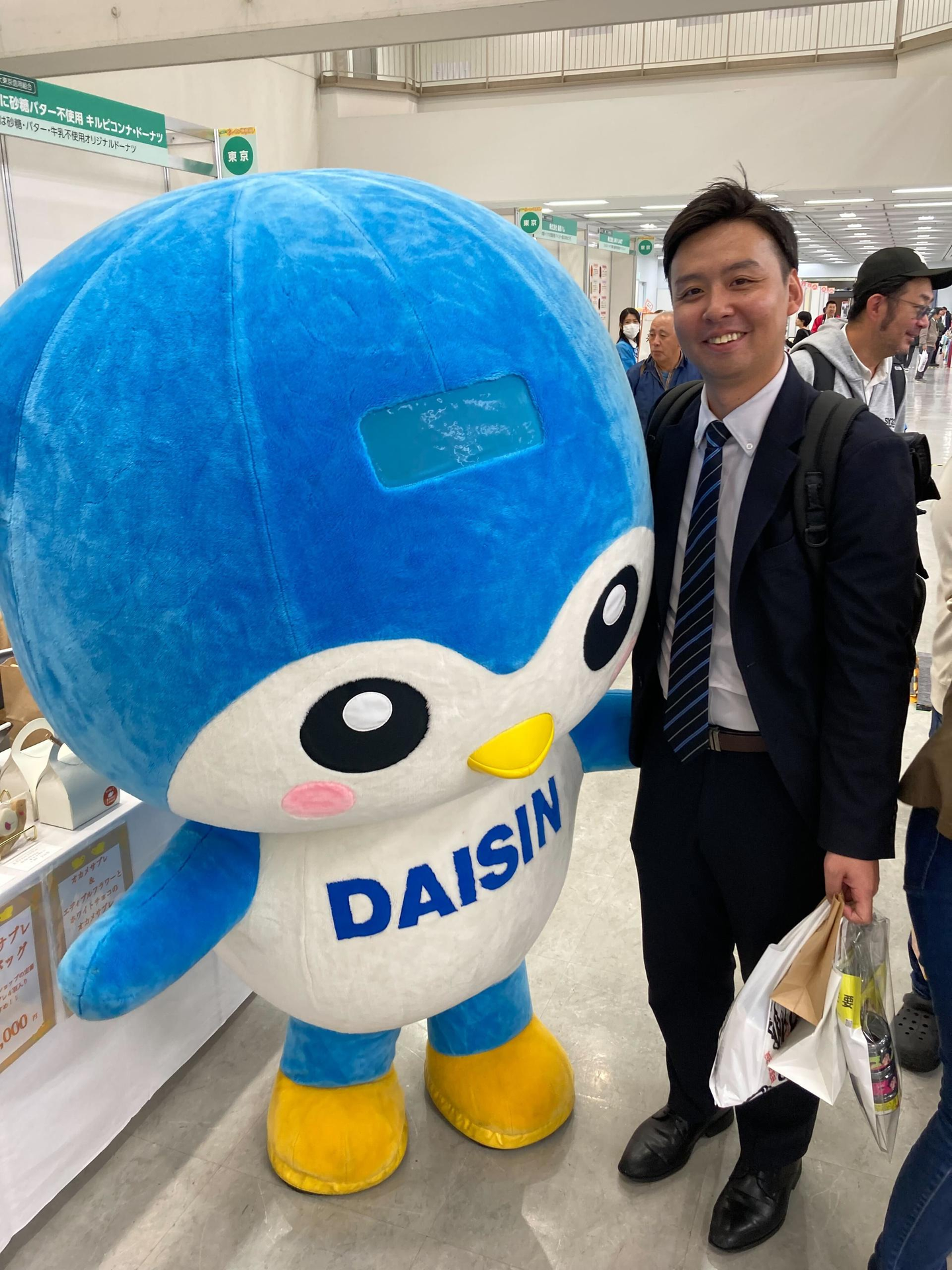 また、大東京信用組合のマスコット「大くん」とのツーショットも撮影しました。エントランスでは各地のPRキャラクターと一緒に写真を撮ることができました。