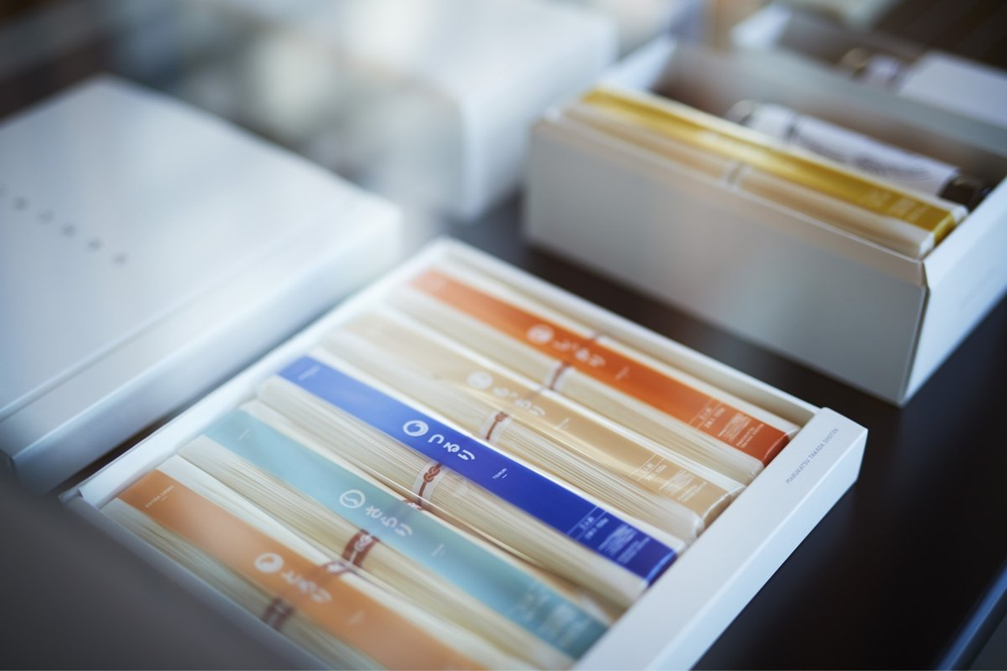 物販は、13種類ある素麺のパッケージを統一しシリーズ化しました。太さやコシ、食感の異なる素麺を、自分好みのものを選んで買う「ネスプレッソ」のようなスタイルですね。