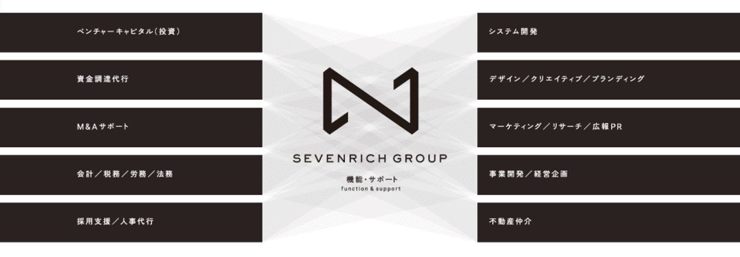 セブンリッチにはグループのなかに、会計労務・採用支援・システム開発・飲食・デザイン・マーケティングなど様々な機能を備えています。
