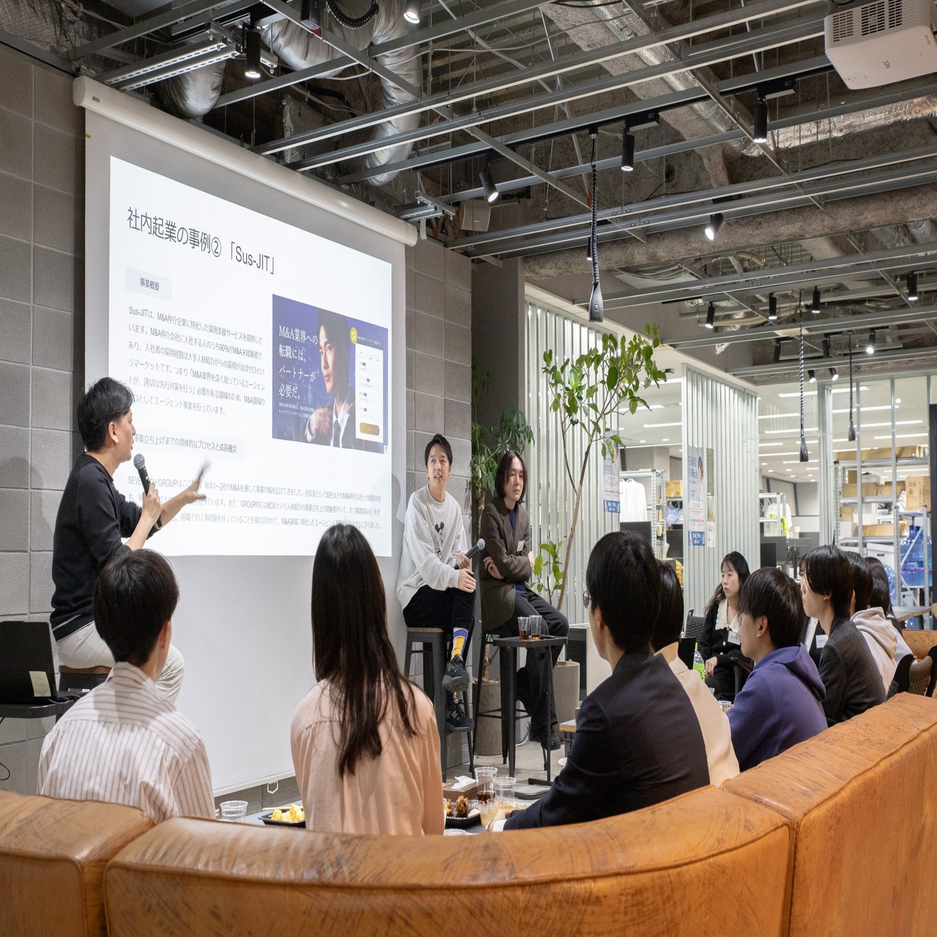後半は事業部長の1人である三木 弦太さんを交えてパネルトークタイムに。司会者からの質問にふたりが答えていきました。ここでは、質問をいくつかピックアップしてその模様をお届けします。
