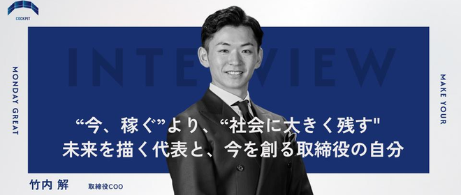 家族を1つにするために甲子園を目指し、消防士志望から一転して独立の道へ。さらには25歳で3,000万円の借金を背負いながらもわずか1年で完済し、現在は年商10億円を実現──。常識外れのハードシングスを駆け抜けてきたのが、株式会社CockPit代表の鯰江です。本記事では、幼少期から現在に至るまでの原体験と、アップデートし続ける価値観の変遷を深掘りします。鯰江 純樹 / 代表取締役CEO1994年生まれ。大谷世代として高校生時代にレギュラーとして甲子園出場を経験し、熊本地震のボランティア活動を機に「もっと大きなスケールで人を助けるためにまずは影響力を付ける」と決意して上京。一部上場メーカーの...