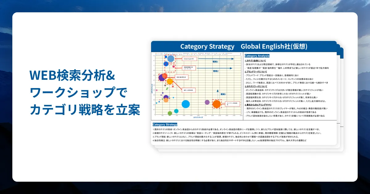 ワークショップ形式で顧客・カテゴリ・独自性を戦略立案。