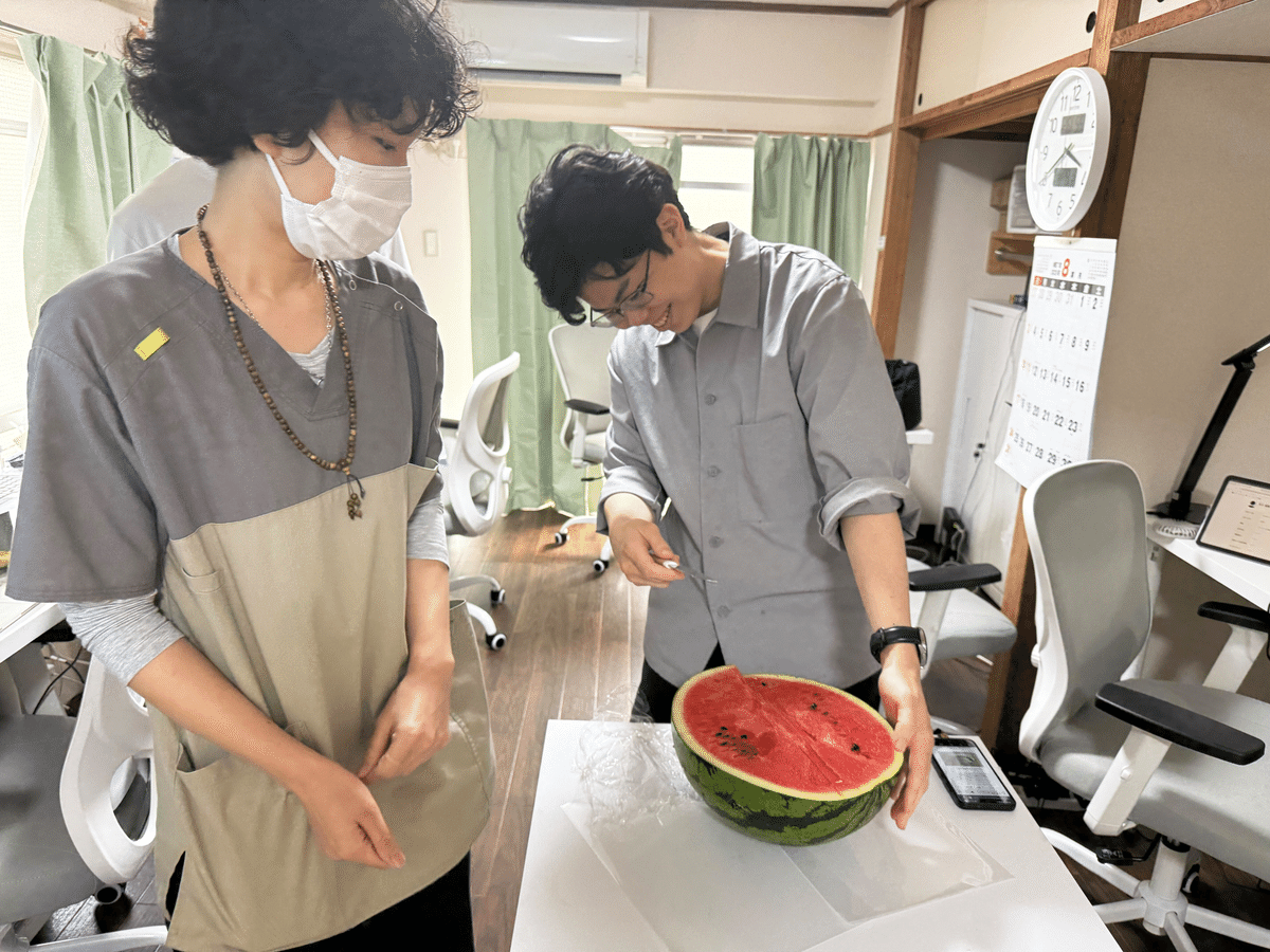 この日の午後は、介護職メンバーと一緒におやつタイムからスタート!
