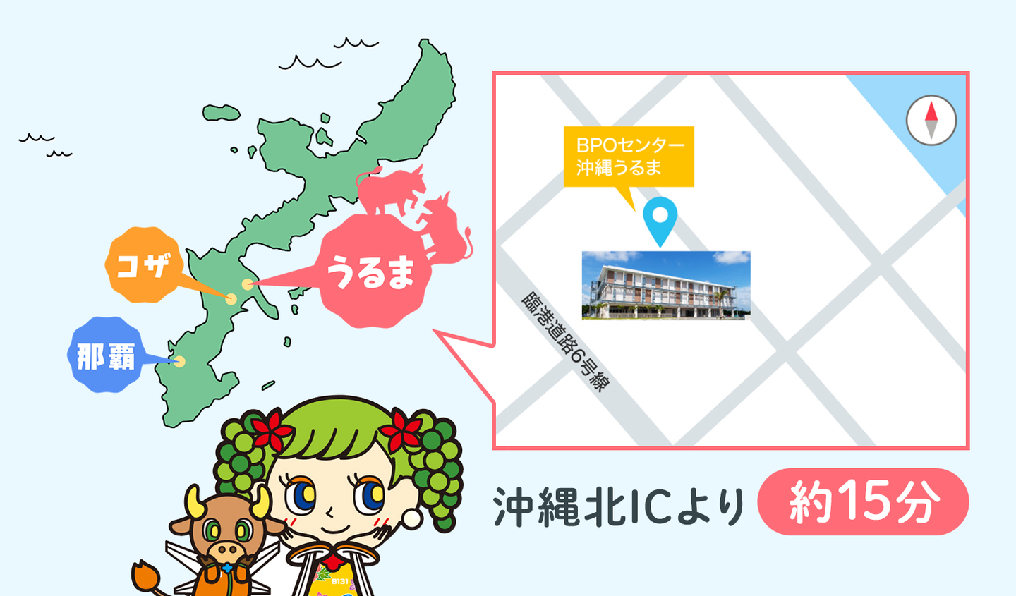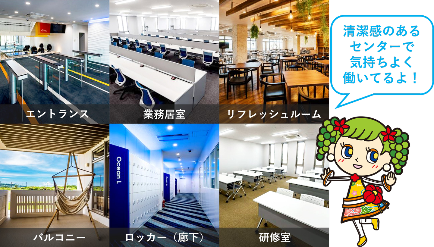 はいたい!ぐすーよー、ちゅーうがなびらー!(訳:こんにちは!ご機嫌いかがですか!)ETS採用課の福澤です🌞今回は、沖縄県うるま市にある「BPOセンター沖縄うるま」のご紹介をさせていただきます!私も約1年間在籍したことがあり、キレイなオフィスと穏やかな現地メンバーの皆様と過ごした思い出深いセンターです!昼休憩時にセンター裏の海で釣りをしてるメンバーがいたのが衝撃でしたね🎣(笑) 是非たくさんの人に知ってもらいたい素敵なオフィスなので、最後までお読みいただけると嬉しいです!TOP画像にも登場していますが、沖縄うるまセンターのマスコットキャラクター「ケラミィ」と「カウル」も以後お見知りおきください👧🐄