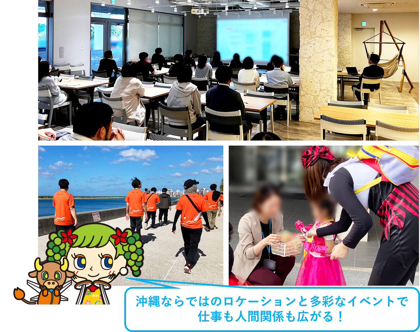 沖縄うるまセンターでは、未経験スタートのスタッフもたくさん活躍しています。なぜなら「はじめの一歩」を応援してくれる仲間がたくさんいるからです。沖縄特有の「ゆいまーる*」の精神も活きており、チームワークが強く、相談しやすく、共に成長できる職場です。