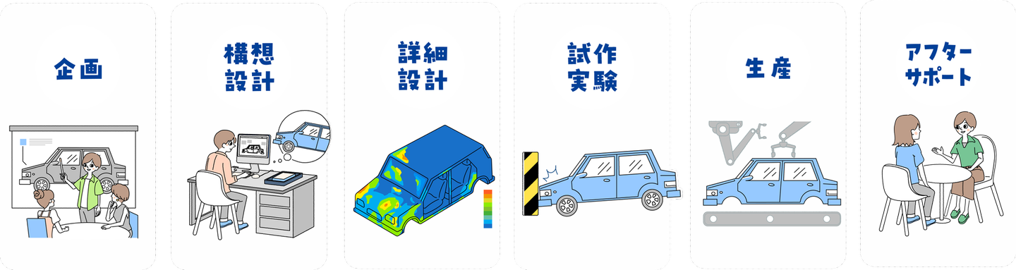 上記がモノづくりの一連の流れです。モノづくりは企画から設計、生産まで複数の工程を経て進みます。その中の「試作実験」とは、設計内容をもとに試作品を作り、量産前に問題がないかを確認する重要な工程です。今回は、試作実験工程においてセンターが担当している業務の一例として「試験依頼書の作成業務」をご紹介します。